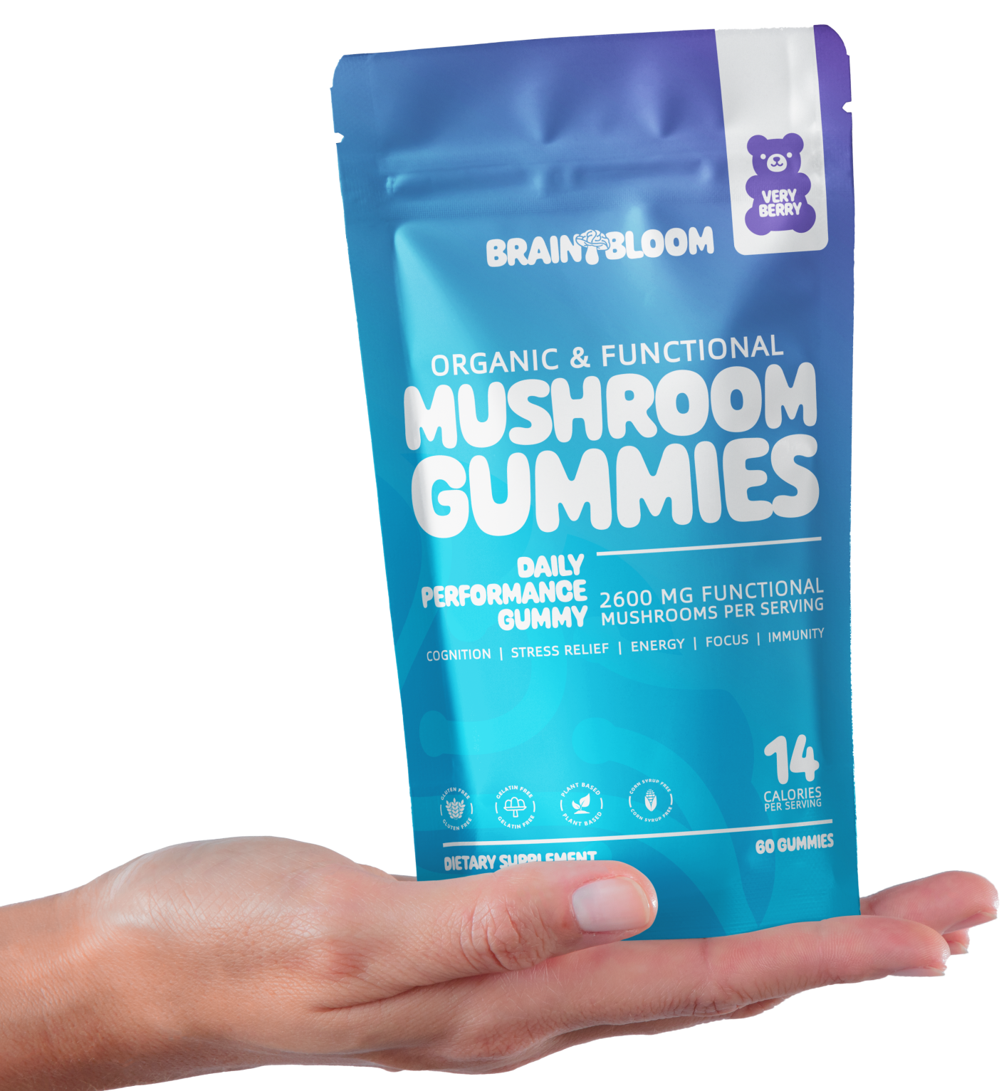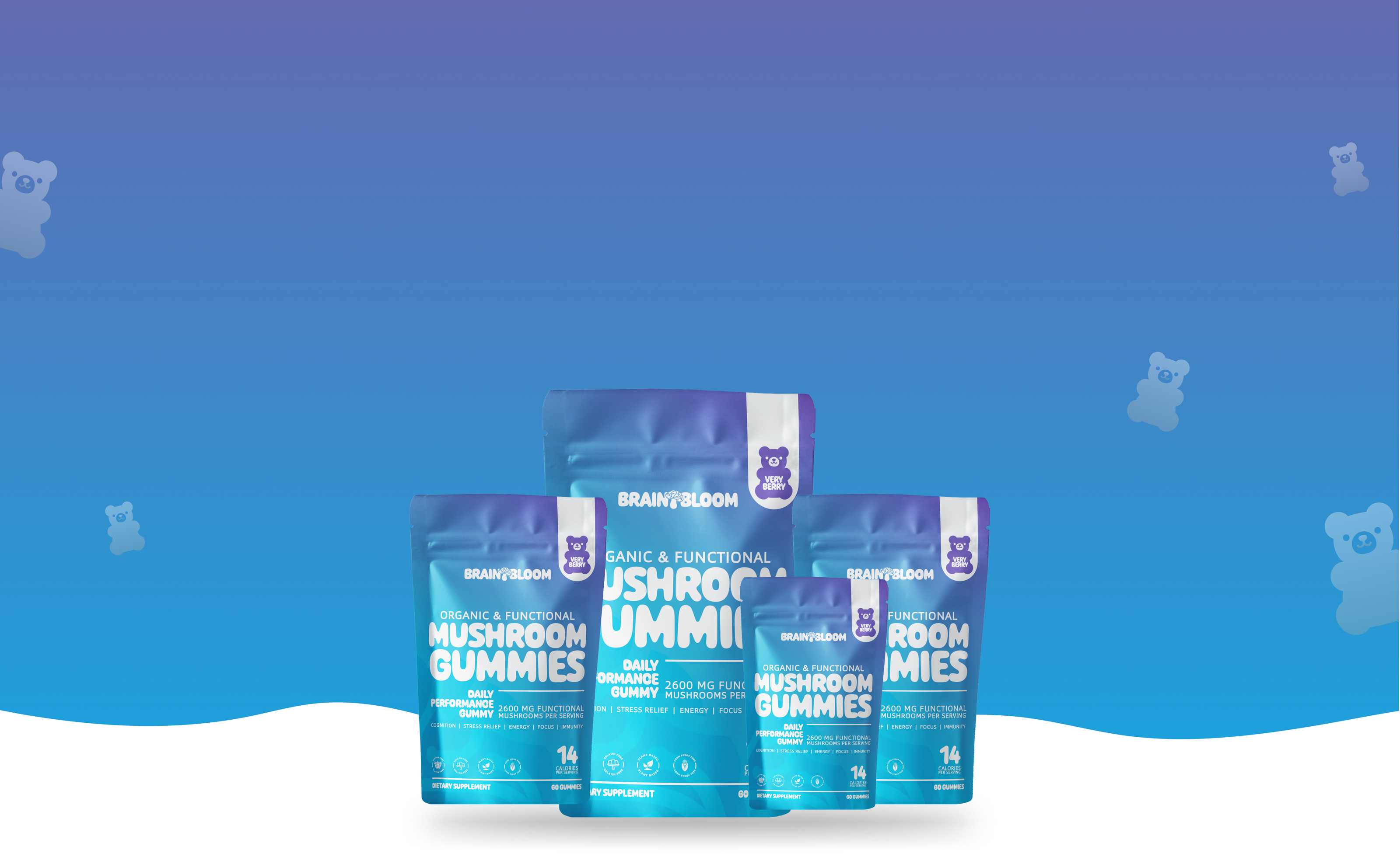 BrainBloom™ Daily Performance Gummy is a powerhouse blend of nature’s most effective functional mushrooms — formulated to support focus, immunity, energy, and overall well-being. Each gummy delivers a daily dose of adaptogenic mushrooms like Lion’s Mane, Reishi, and Cordyceps in a convenient, tasty form you’ll actually look forward to.