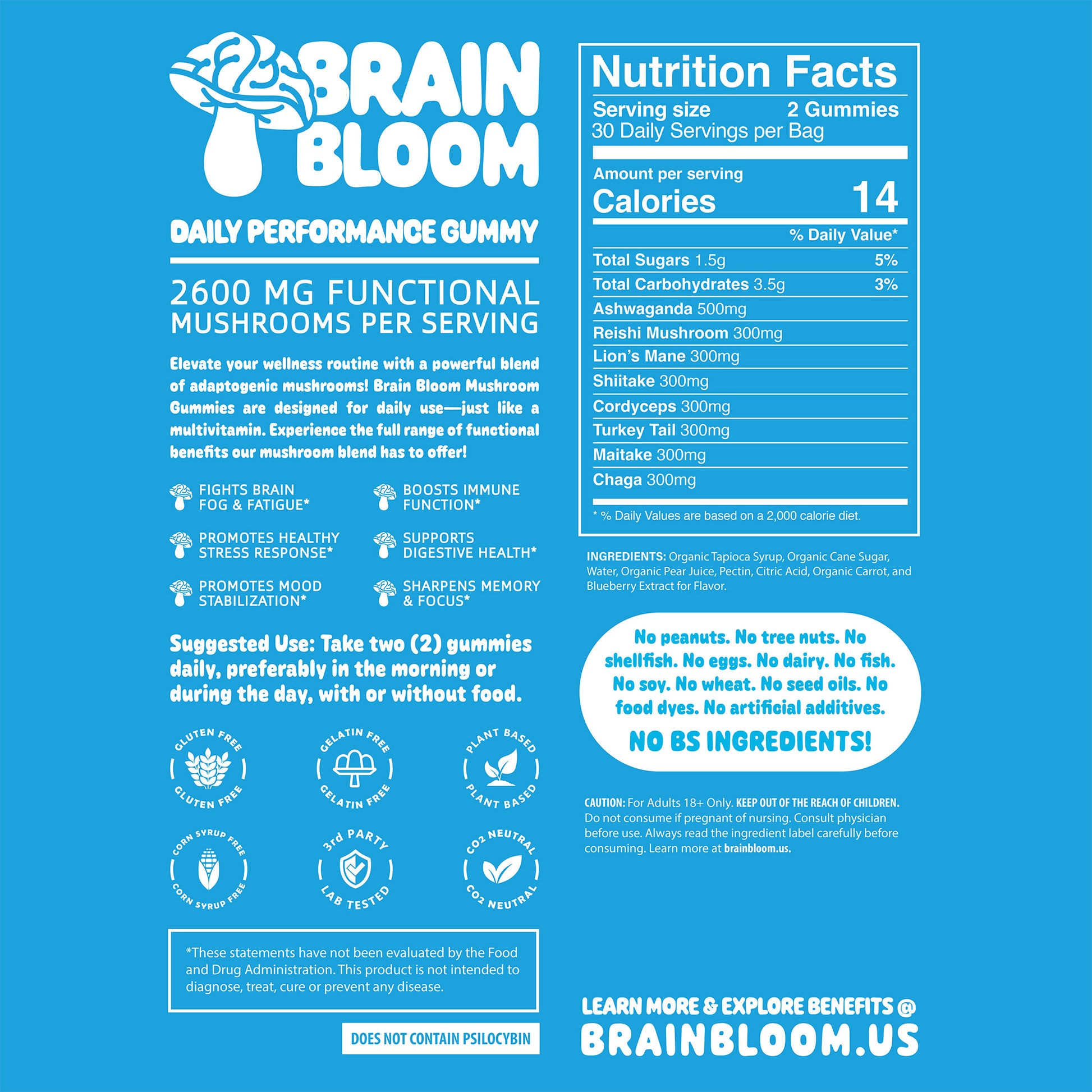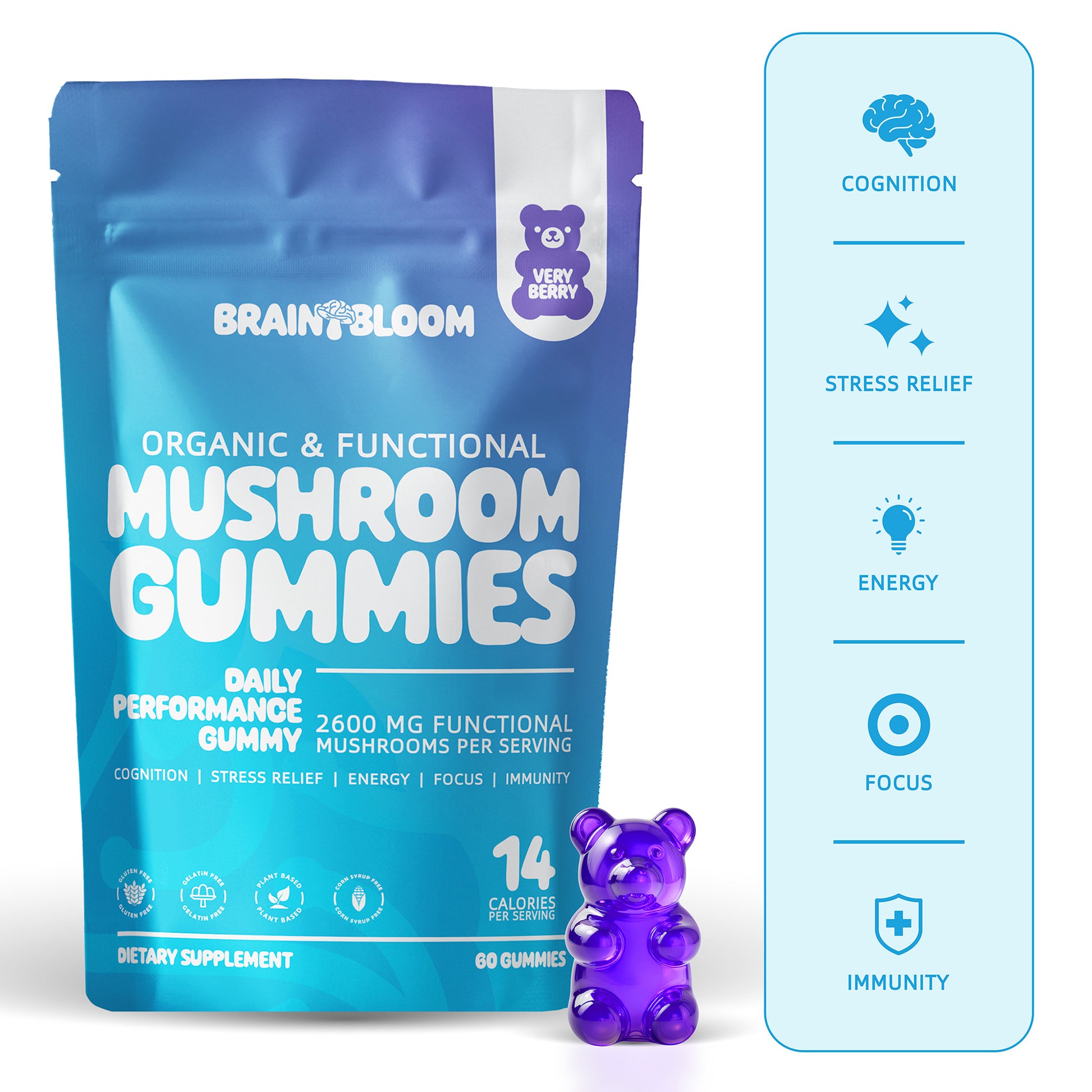 BrainBloom Daily Performance Mushroom Gummies – Very Berry